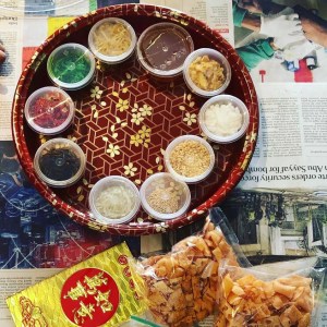 On the eve of CNY, a reunion dinner is held, where all the family members get together to celebrate. Here in Singapore, even the non-Chinese do the same! In my family, it’s reunion lunch on the first day of CNY with Yusheng and homemade steamboat. Yusheng is known as the ‘Prosperity Toss’. It usually consists of strips of raw fish, shredded vegetables and a variety of sauces and condiments, among other ingredients. Everyone gathers around the Yusheng and toss the ingredients as high as possible, exchanging blessings for prosperity and wealth.