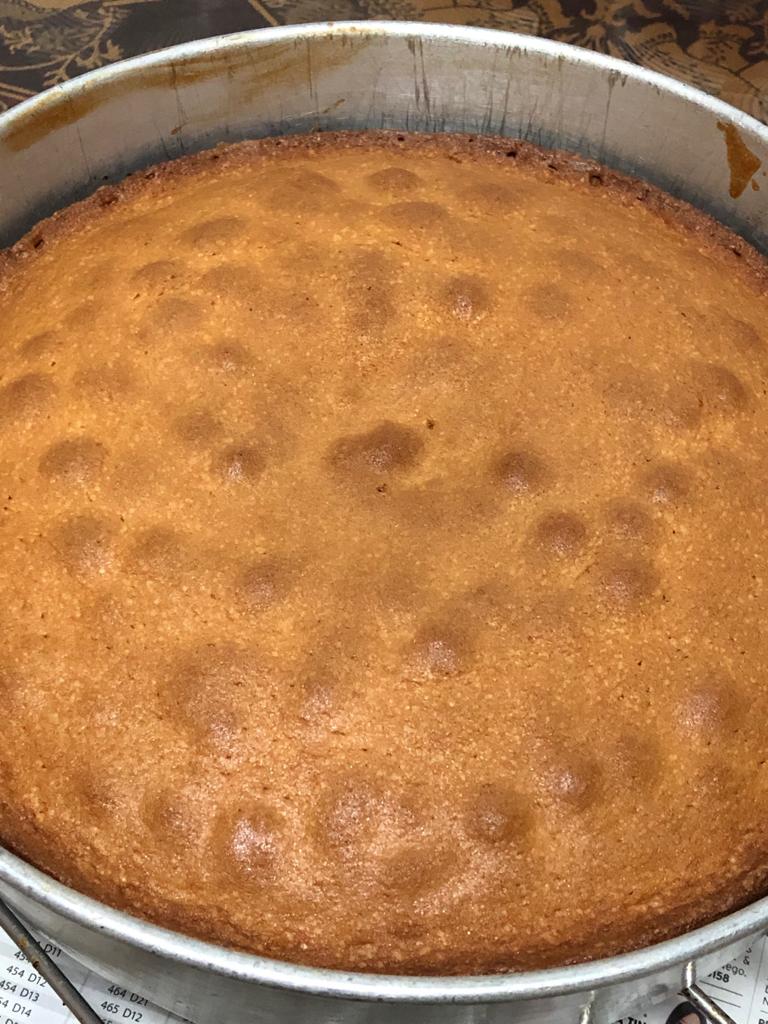 - Use a spatula and run it around the circumference of the tin. Place a wire rack on top of the cake pan and invert, lifting the cake off the pan. Remove the baking paper and re-invert the cake again to another wire rack so that the cake is facing right side up.