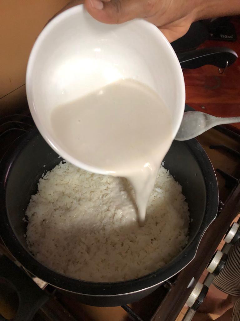 - Then add the coconut mil and let the rice cook till the coconut milk is fully absorbed.