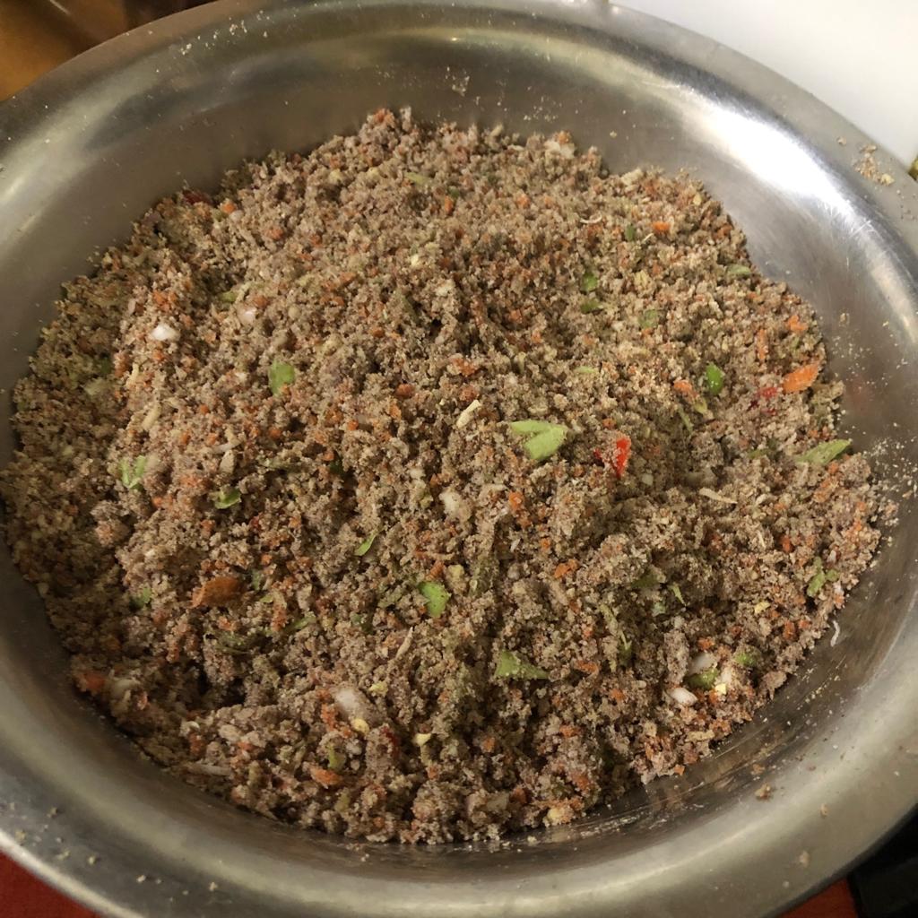 - In a large bowl, mix all the dry ingredients together and slowly sprinkle the water little at a time and keep rubbing the flour mixture with the water with your fingertips.