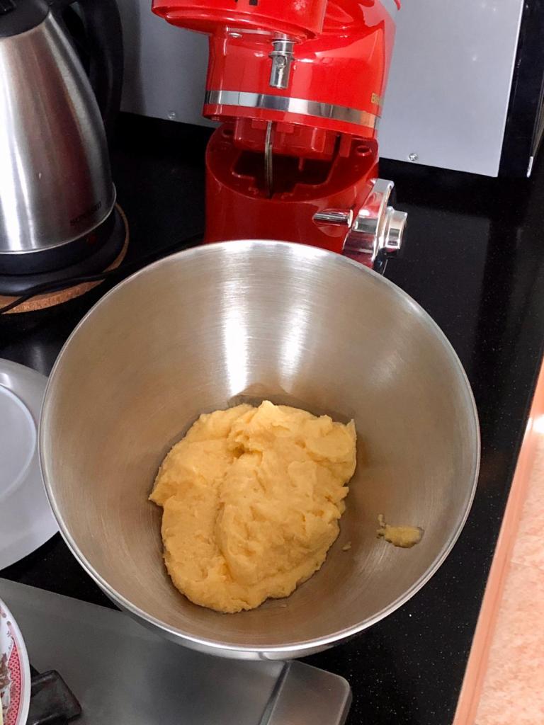 - Cream butter and 100g sugar in a mixer for about one minute at medium high speed. With the mixer still on, add milk gradually, followed by the semolina flour. Mix till combined. Switch off the mixer and let the mixture stand for an hour. This allows the semolina to absorb moisture.