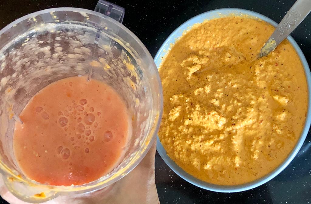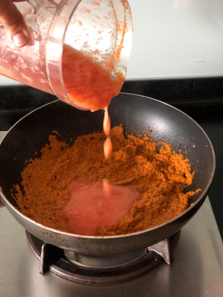 Tomato paste and coconut ground with dried chilli and coriander seeds