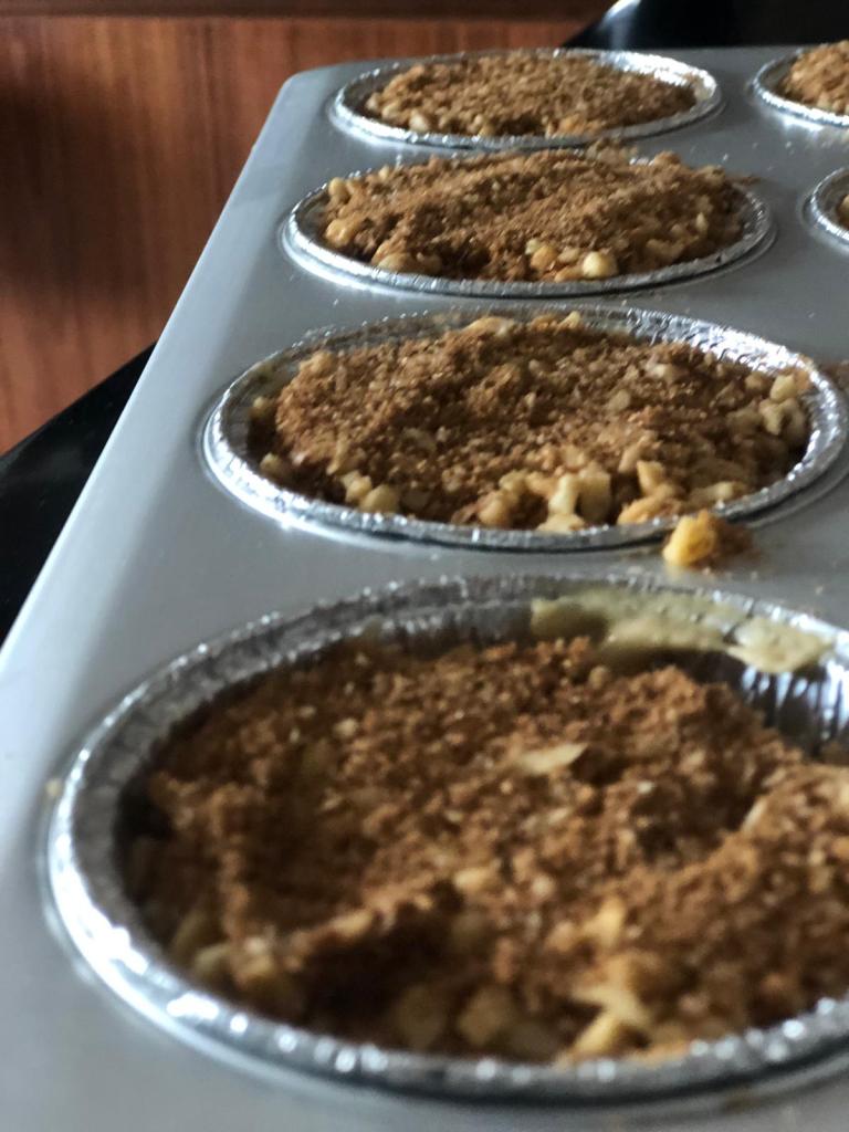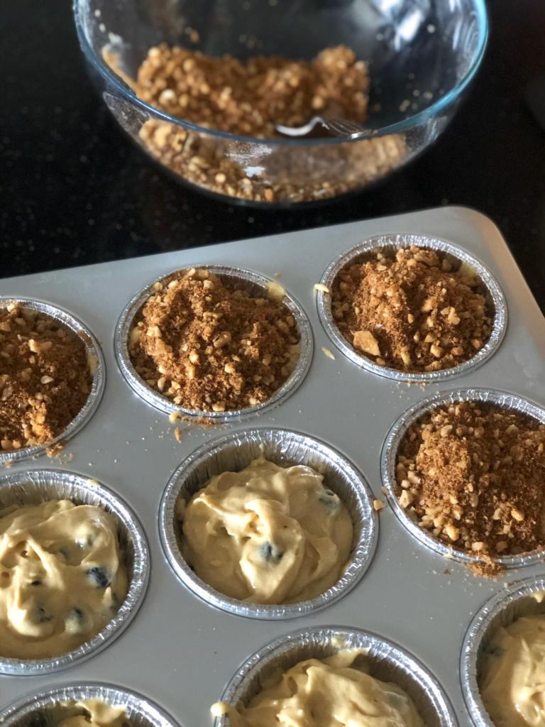 So, what is streusel topping? It’s basically a crumbly topping which is easily made using sugar and cinnamon and you can add chopped nuts as well. It’s baked on top of cakes, muffins or pies.