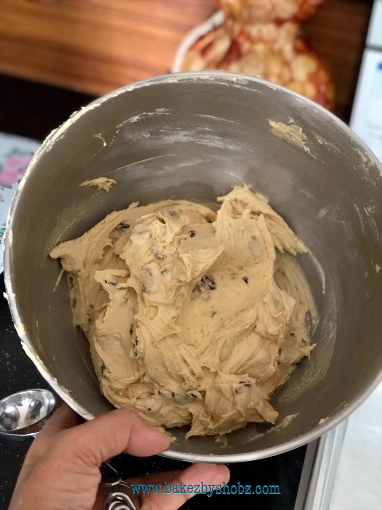- Then add the raisins and beat until combined.