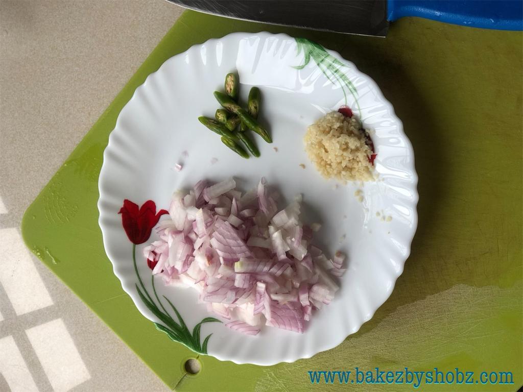 - Add a bit more of oil if required and fry the onions, ginger and chilli till onions turn translucent.