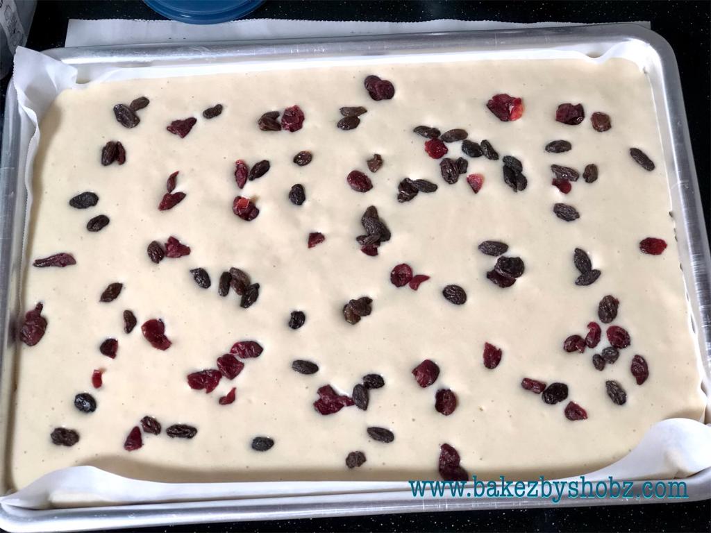 - Scrape into the prepared baking sheet, spreading into an even layer.