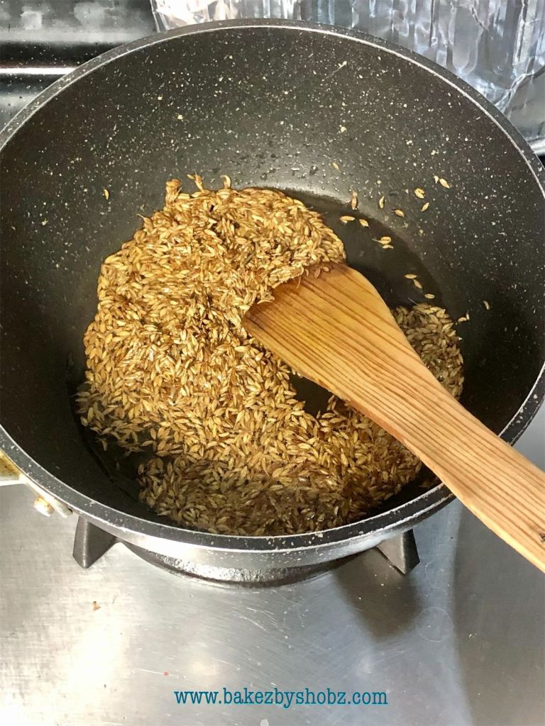 - In a medium wok, heat some oil and once hot, add the cumin seeds and let it crackle.