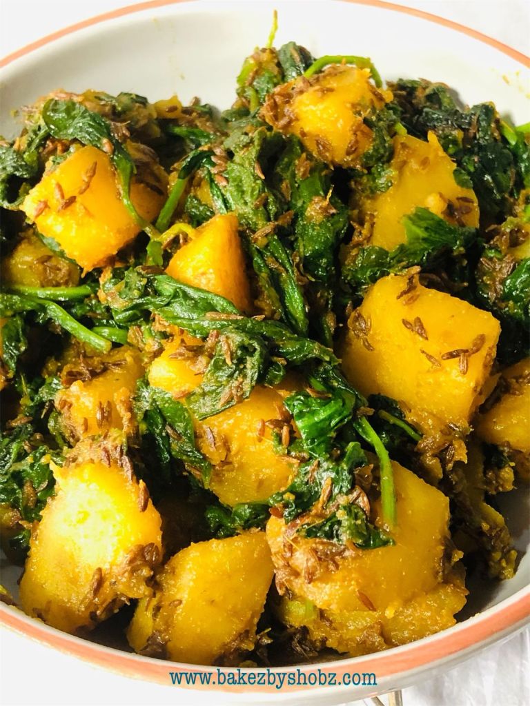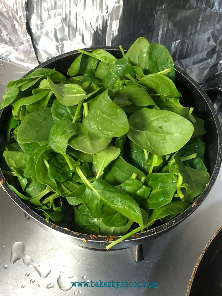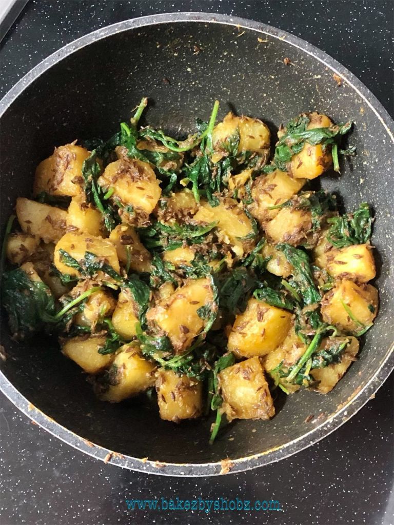 - When potatoes are 3/4 cooked, add the baby spinach and salt and stir well.