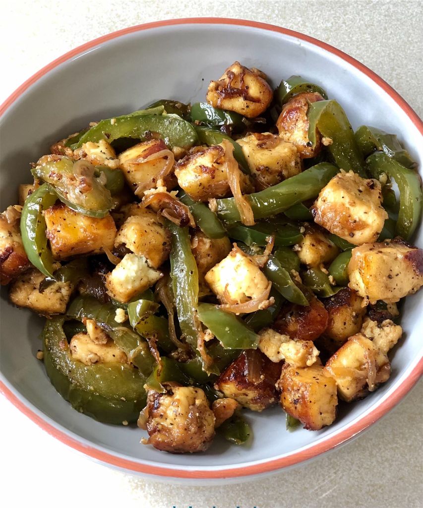 This is a super quick and easy dish to make and so very tasty too! I love paneer, but am not a huge fan of bell pepper (capsicum). Anyways I just love this recipe, probably cos of the charred paneer, black pepper and the lemon juice.